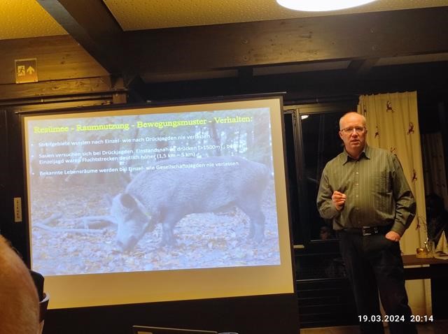 Für die erste Hegeringversammlung des Jahres konnten wir Toralf Bauch von der Wildforschungsstelle gewinnen. In einem spannenden, kurzweiligen Vortrag referierte er über die Raumnutzung und das Verhalten von Schwarzwild. Er räumte mit Mythen auf und manch erfahrener Jäger konnte für die eigene Jagdpraxis etwas mitnehmen.