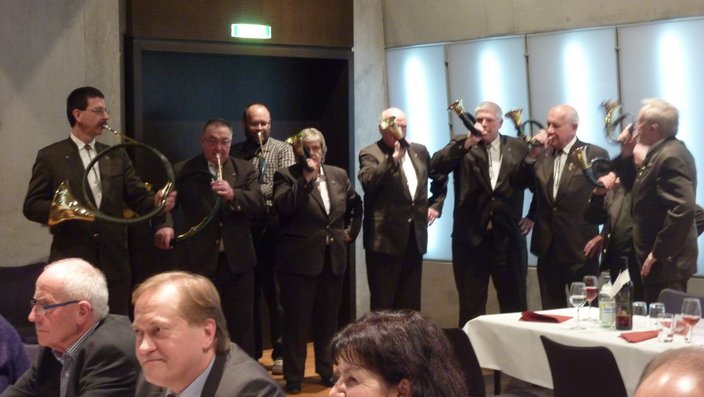 Zwischen den einzelnen Gängen unterhielten die Jagdhornbläser der JV-Esslingen mit entsprechenden Jagdsignalen und Vortragsstücken die Gäste.