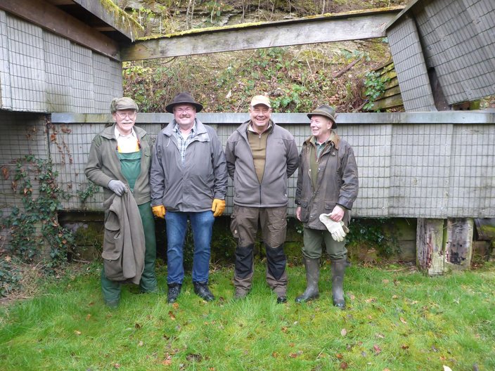 Beim Arbeitsdienst auf dem Schießstand im März haben 5 Mann (Hans Schneider, Ottmar Wiedemann, Klaus-Dieter Vogel, Peter Neuburger und Ulrich Hayd) mit Freischneider und Kettensäge haben die Böschungen frei geschnitten.