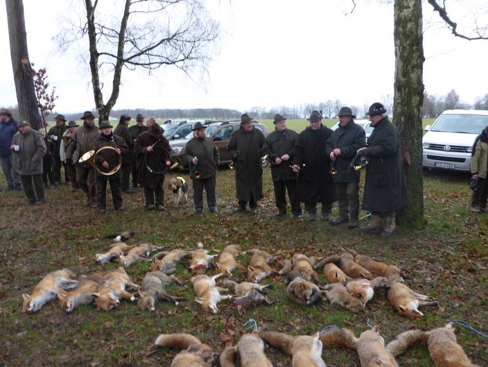 - Das Streckenlegen findet nur symbolisch statt. Von den teilnehmenden Revieren bitte nur 1 bis 3 erlegte Füchse mitbringen. D.H. die Gesamtsumme aller erlegten Füchse wird nur gemeldet.