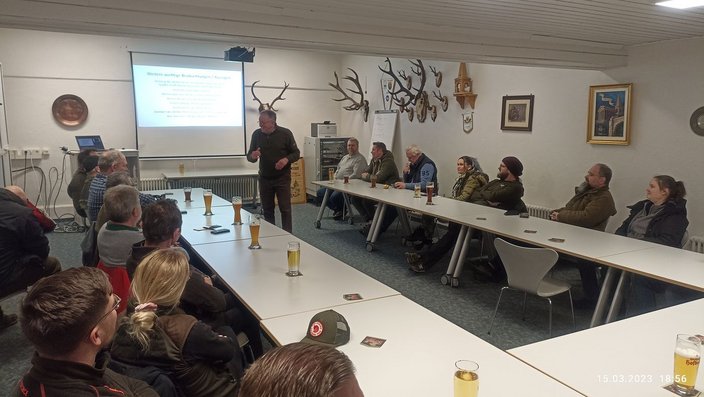 Am Mittwoch, den 15. März 2023 hielt Wolfgang Hinderer im Rahmen der TEA-Time, den seit langem erwarteten Vortrag: "Anschuss - Stück liegt nicht. Was erleichtert einem Nachsuchführer die Arbeit". Im neu gestaltetem Schulungsraum hörten knapp 30 JungJäger für mehr als zwei Stunden zu, und konnten viele neue Informationen für Ihren jagdlichen Alltag mit nach Hause nehmen. Gegen Ende der Veranstaltung wurden von Wolfgang Hinderer viele Fragen beantwortet. Mit mehr als 40 Jahren Erfahrung als Nachsuchenführer, gibt es halt wenig, was er noch nicht erlebt hat.