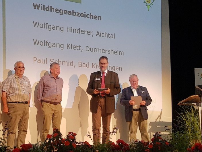 Auf dem Landesjägertag, der dieses Jahr am 09. Juli 2022 in Ilsfeld stattfand, wurde einem Mitglied aus den Reihen der JV-Esslingen eine besondere Ehre zu teil. Wolfgang Hinderer wurde u.a. für sein langjähriges Engagement bei der Allianz für Niederwild mit dem Wildhegeabzeichen des DJV ausgezeichnet. In einer fast nicht enden wollenden Laudatio bedankte sich der Landesjägermeister Dr. Friedmann für das unermüdliche Engagement von Wolfgang Hinderer.