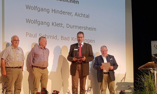 Auf dem Landesjägertag 2022 in Ilsfeld wurde Wolfgang Hinderer mit dem Wildhegeabzeichen des DJV ausgezeichnet
