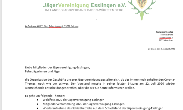 Mitgliederversammlung 2020 der Jägervereinigung Esslingen