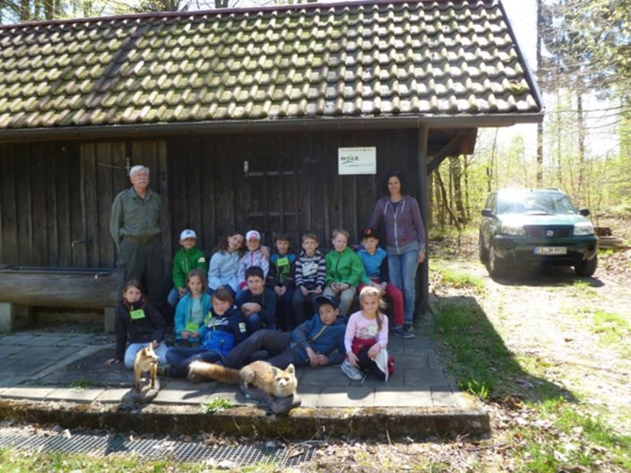 Nach einem kleinen Fußmarsch kamen wir zu einer Jägerhütte, die mich sehr faszinierte vor allem die vielen Trophäen, die dort hingen. Dann stellten wir Fragen, bekamen sehr aufschlussreiche Antworten, sahen ein Gewehr mit Patronen und durften auch durch ein Fernglas „gucken“. Danach starteten wir eine Rundtour durch den Wald. Dort sahen wir verschiedene ausgestopfte Tiere was sehr schön gestaltet war. Am schönsten war der Feldhase. Wir sahen auch eine Salzlecke für die Rehe. Danach gingen wir zum Hochstand, um von oben den Ausblick zu genießen. Am besten haben mir dir ausgestopften Tiere in freier Wildbahn gefallen, die sehr realistisch im Wald versteckt waren. Der Jäger war großartig und hat mich begeistert.
